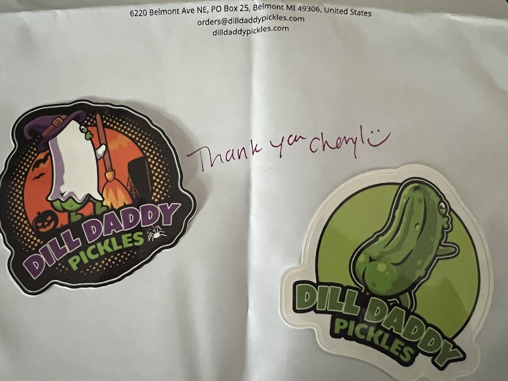 Absolutely love these pickles! They have a great crunch and the perfect amount of flavor. Can’t wait to try the spicy garlic next. Love the personal thank you & stickers too!