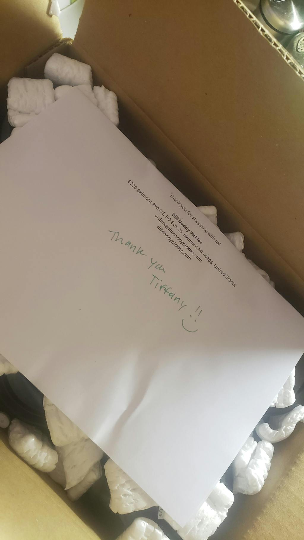 First, let me brag on the A++++ shipping quality, jars, labels, & stickers! Everything was super nice, not cheaply done, perfectly packaged! I also loved the hand-written "Thank you" with my name! Nice personal touch. Second, the pickles themselves are sooooo good and super crunchy! The jars are filled all the way to the top too, which is awesome. The spicy garlic ones are just the right amount of spice without being overwhelming. Leaves a great slow-burn aftertaste, not just heat. I'm excited to see how the flavor profile morphs while curing in the jars a bit longer. :)